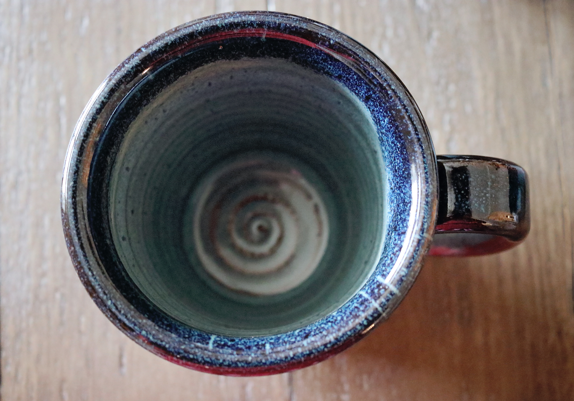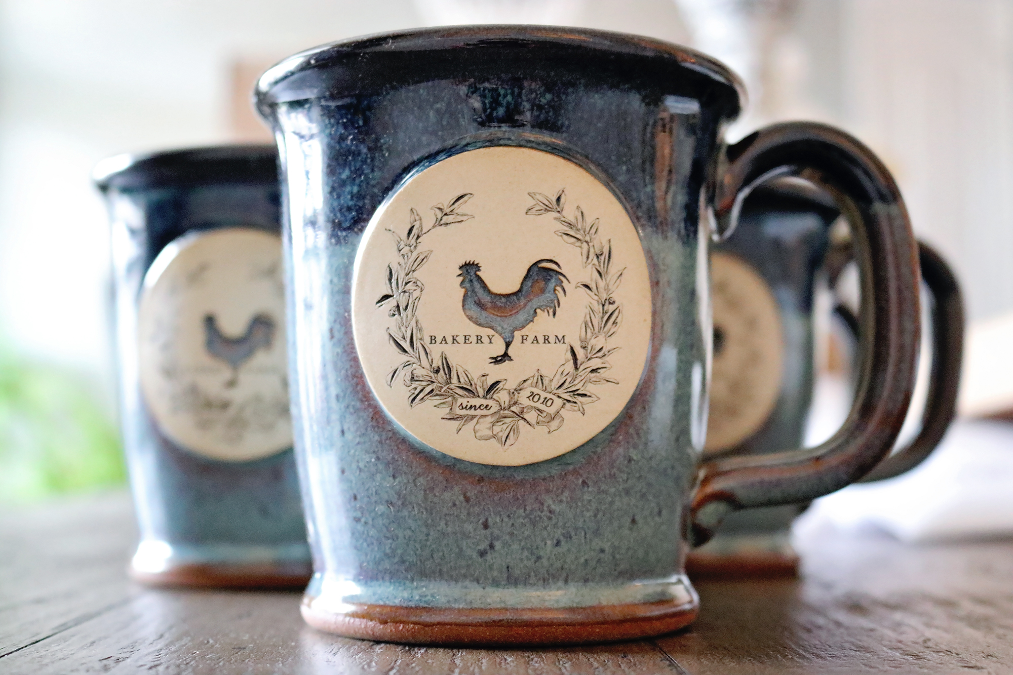 These beautiful limited edition stoneware mugs are individually hand thrown by Sunset Hill Stoneware in Neenah, WI. The mugs are finished with a midnight blue glaze and our Rooster logo.
