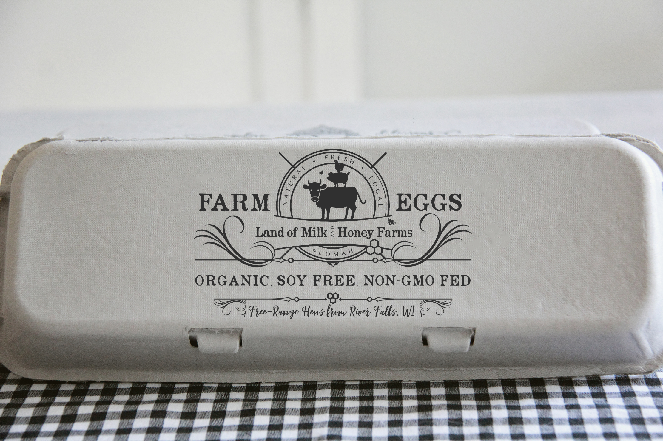 For this stamp, we take your existing logo artwork and make it into a high-quality rubber stamp that will last forever. A logo stamp is great for customizing packaging, stamping egg cartons, labels etc.
