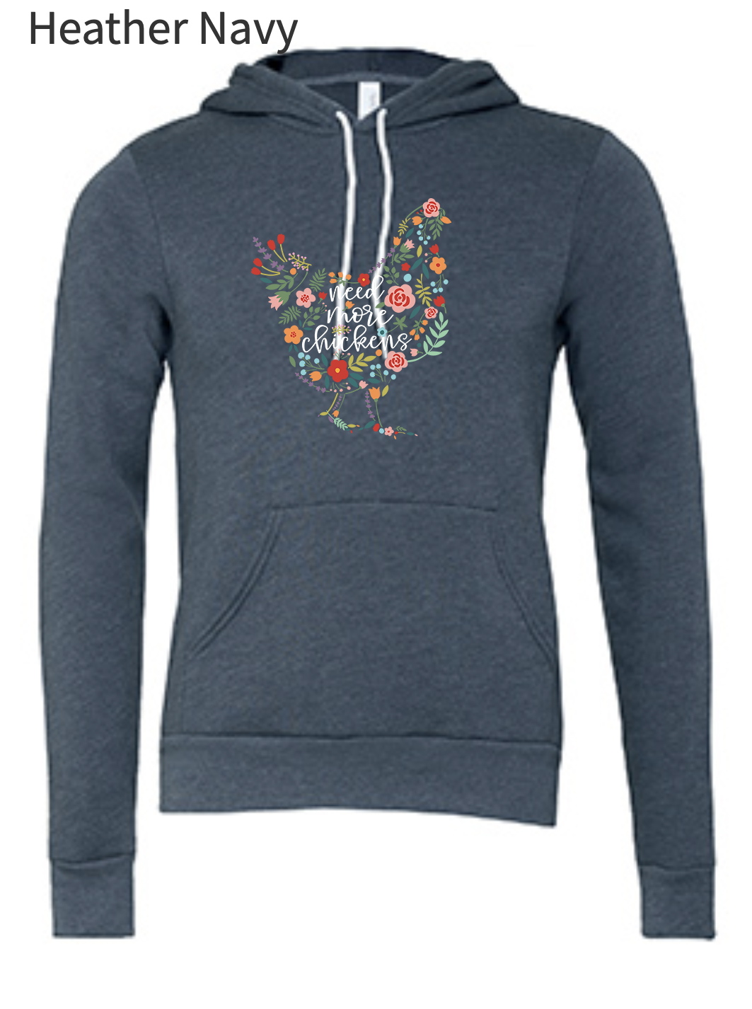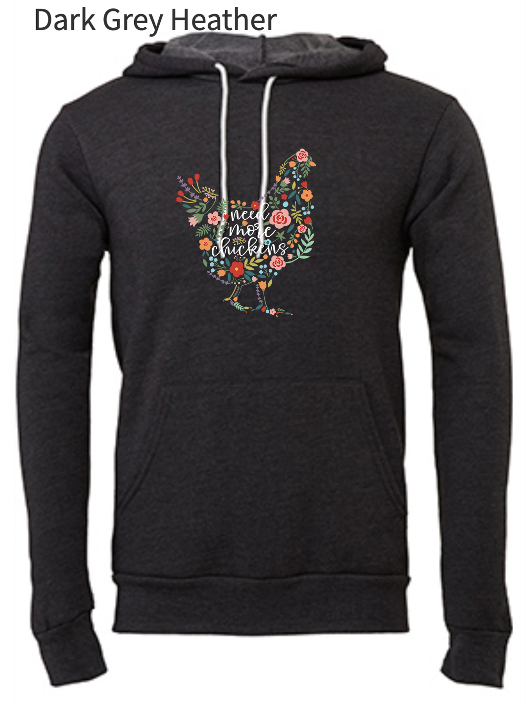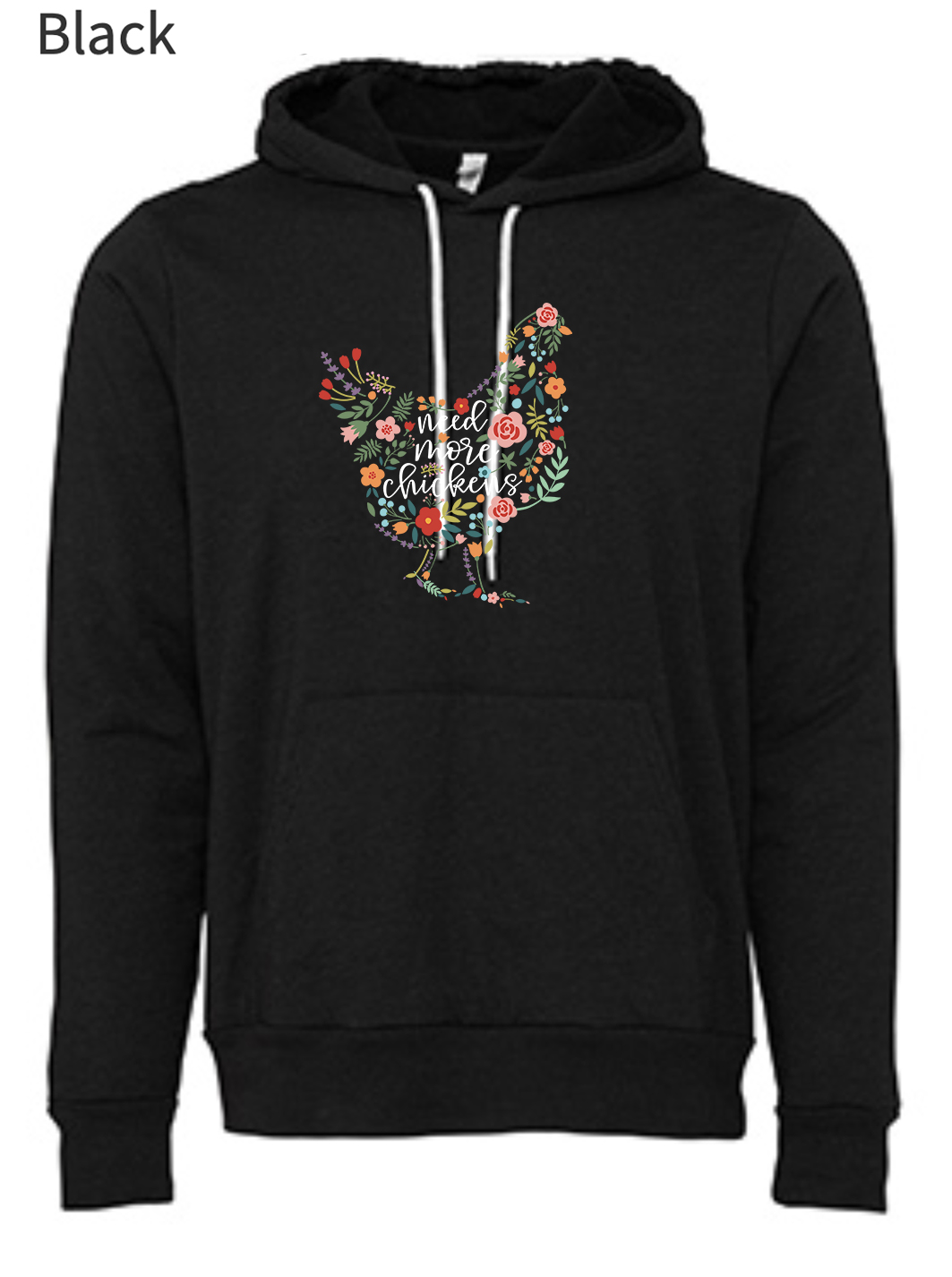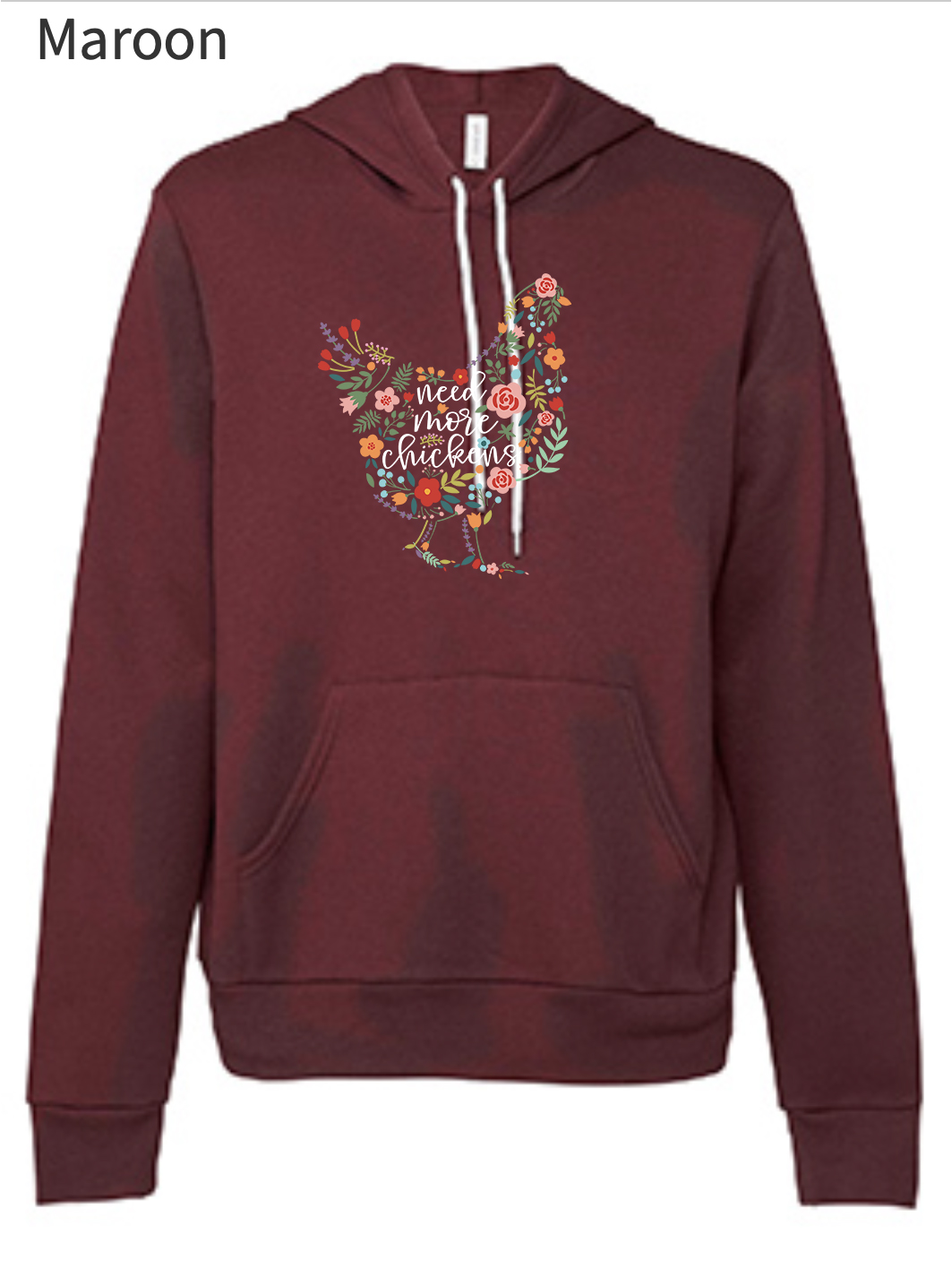 I am very happy with my “Need More Chicken Hoodie”. It is a soft, medium to light weight sweatshirt material. I have worn it several times and have washed it cool cycle and delicate dry and it still looks like new.