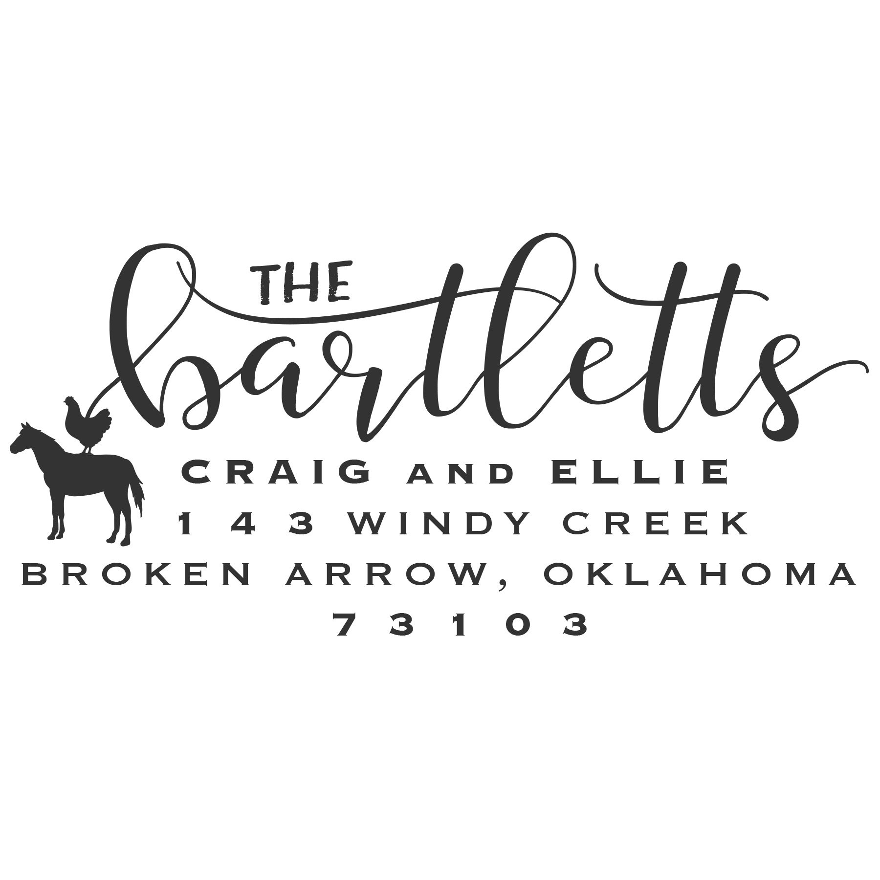 Every rubber stamp in this collection is customizable with your name(s) and address! Enter your information in the text box below (the exact information you provide will be used on your stamp so please double check your spelling)