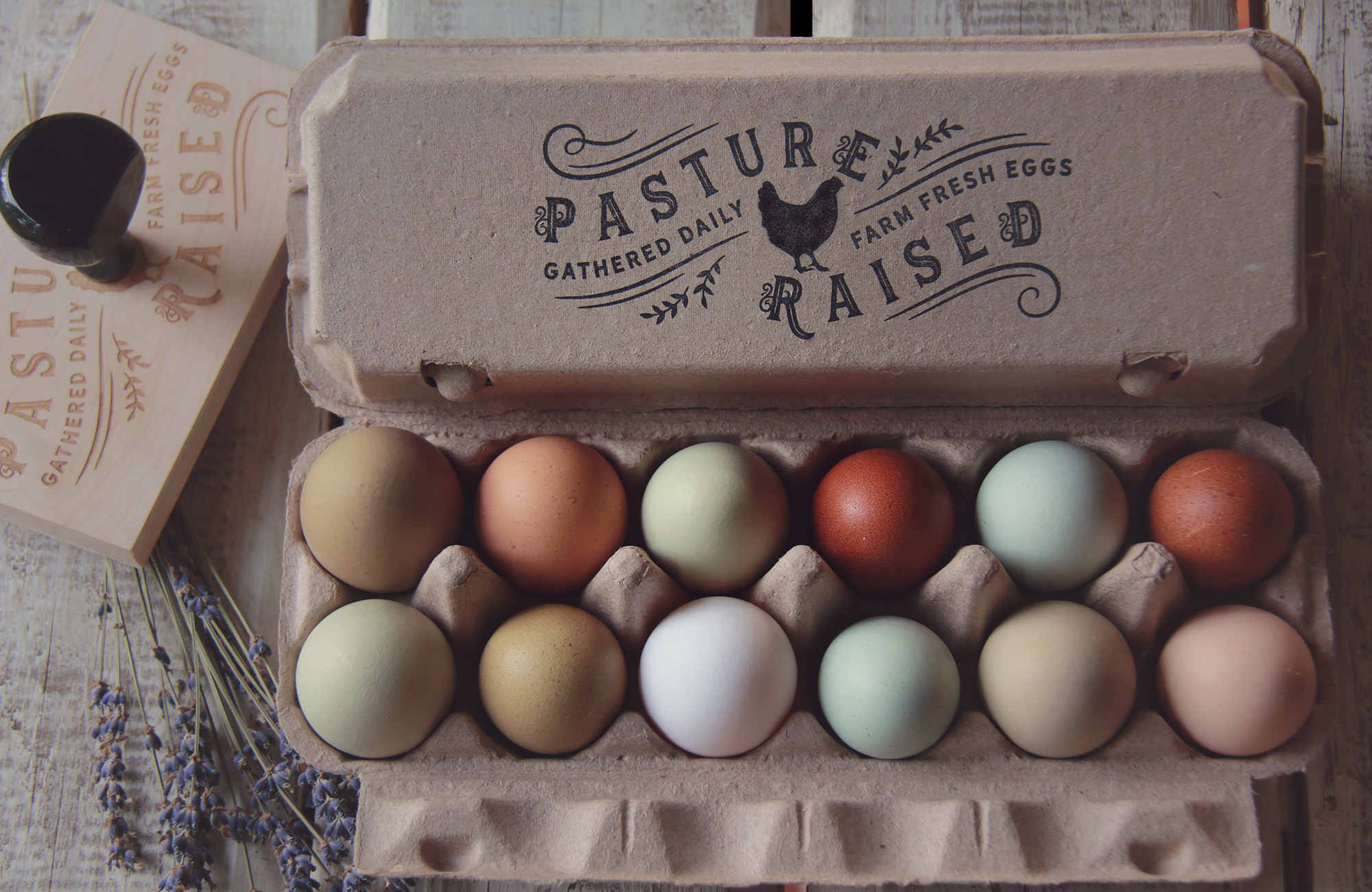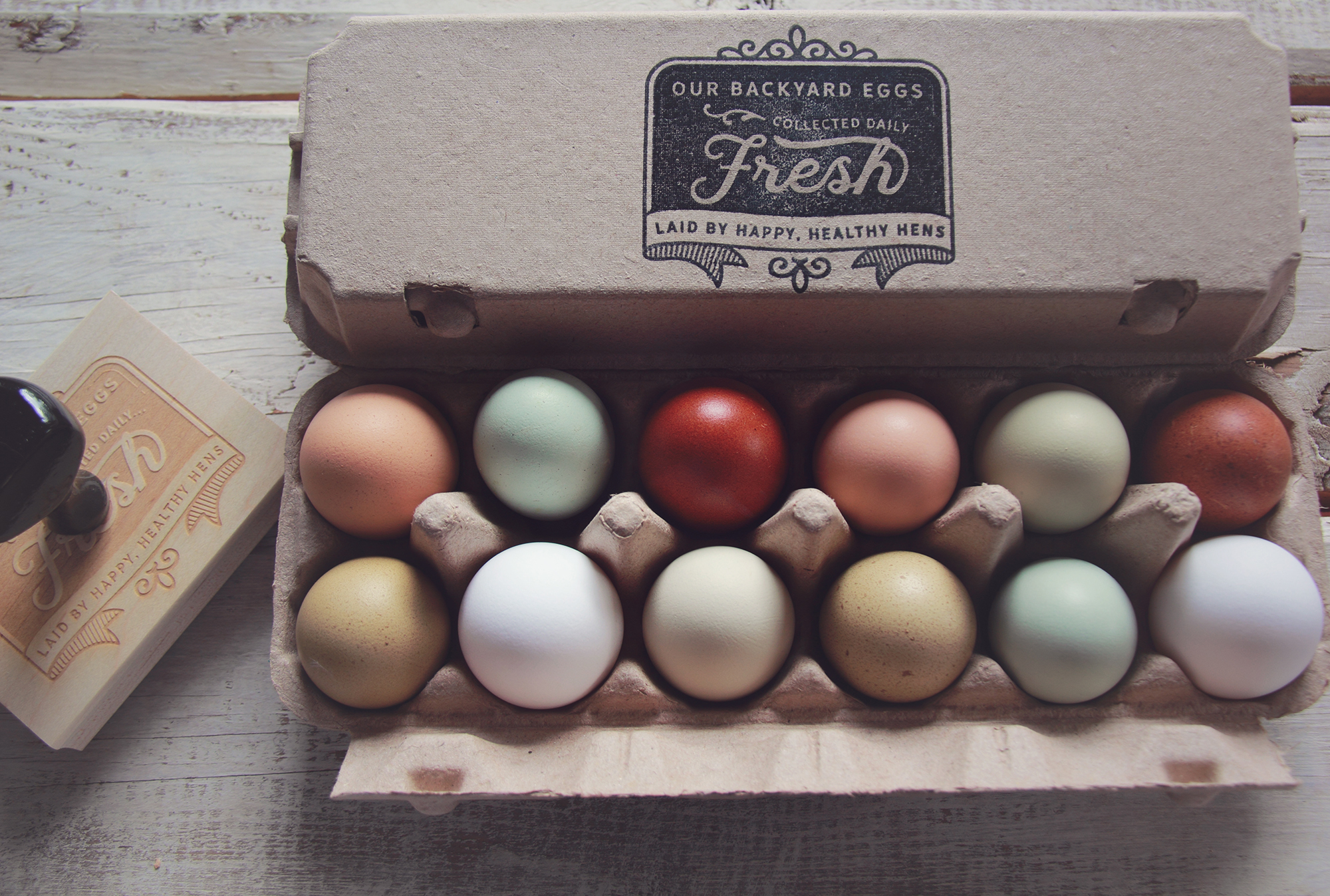 ** For a clear and saturated stamp result on egg carton tops, we recommend opening the egg carton and lying it out flat then using a hard surface underneath the carton top (such as our Stamping Blocks) in order to fully press the design on to the carton. **