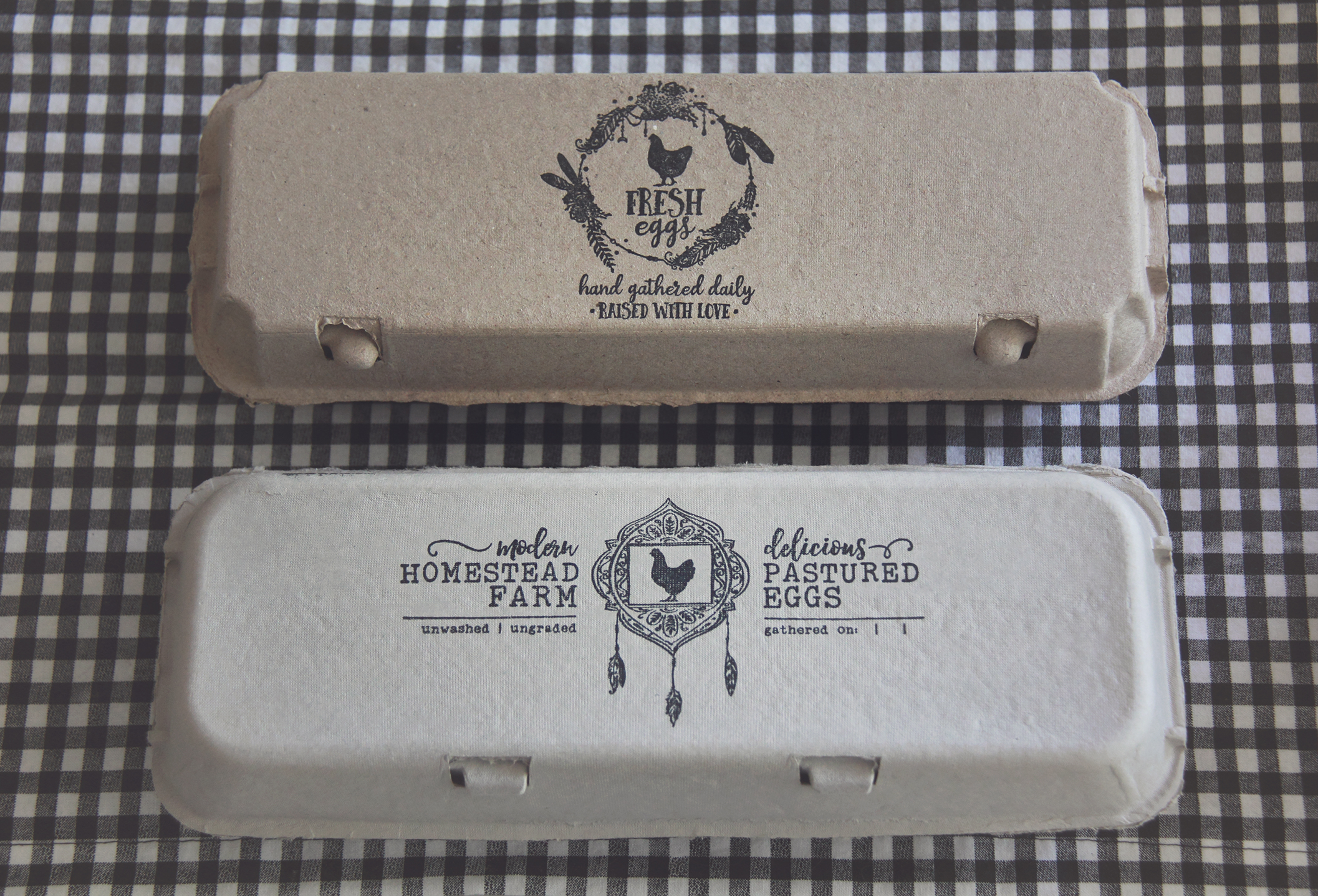 ** For a clear and saturated stamp result on egg carton tops, we recommend opening the egg carton and lying it out flat then using a hard surface underneath the carton top (such as our stamping blocks) in order to fully press the design on to the carton. **