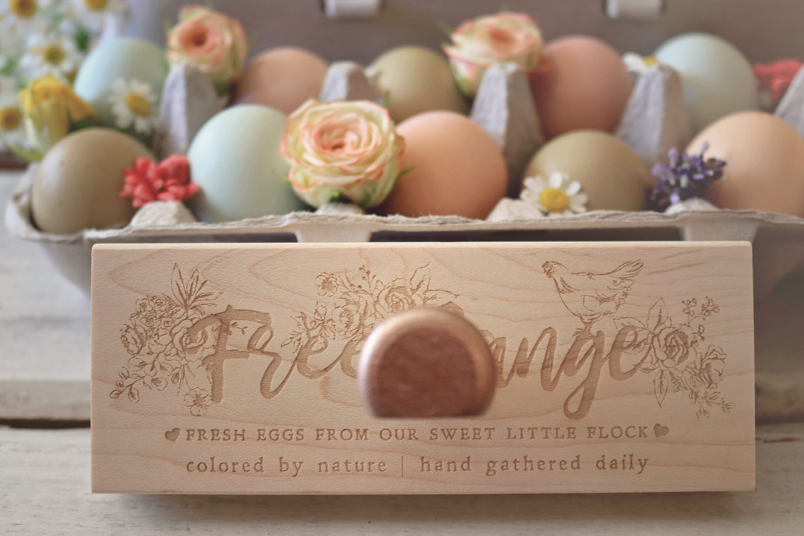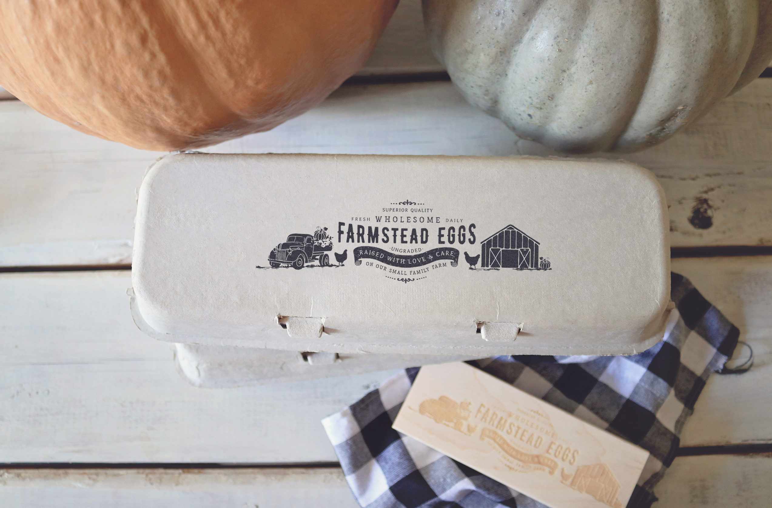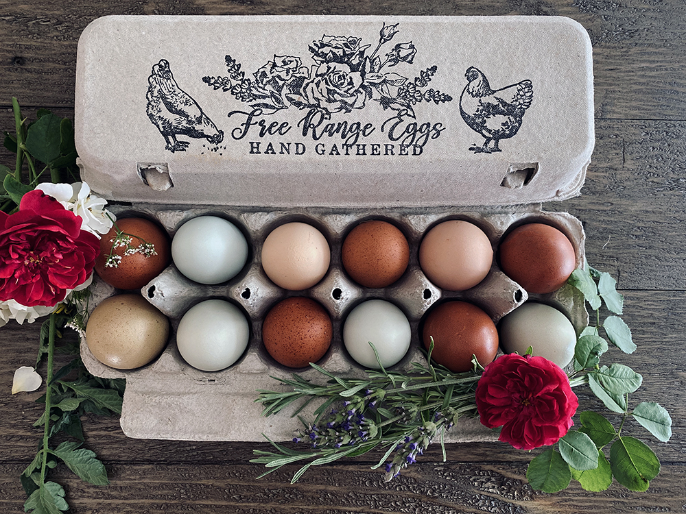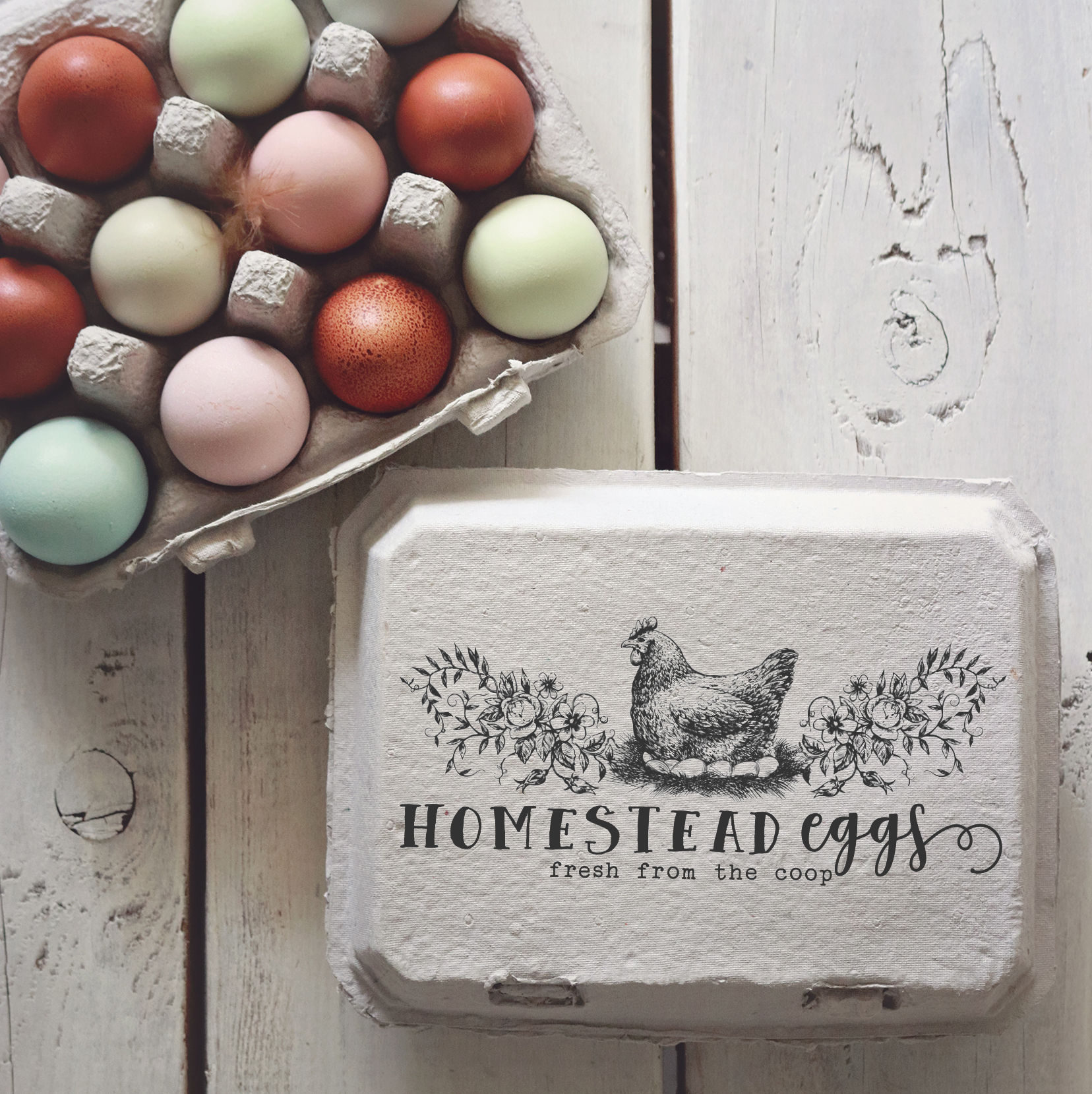 ** For a clear and saturated stamp result on egg carton tops, we recommend opening the egg carton and lying it out flat then using a hard surface underneath the carton top (such as our stamping blocks) in order to fully press the design on to the carton. **