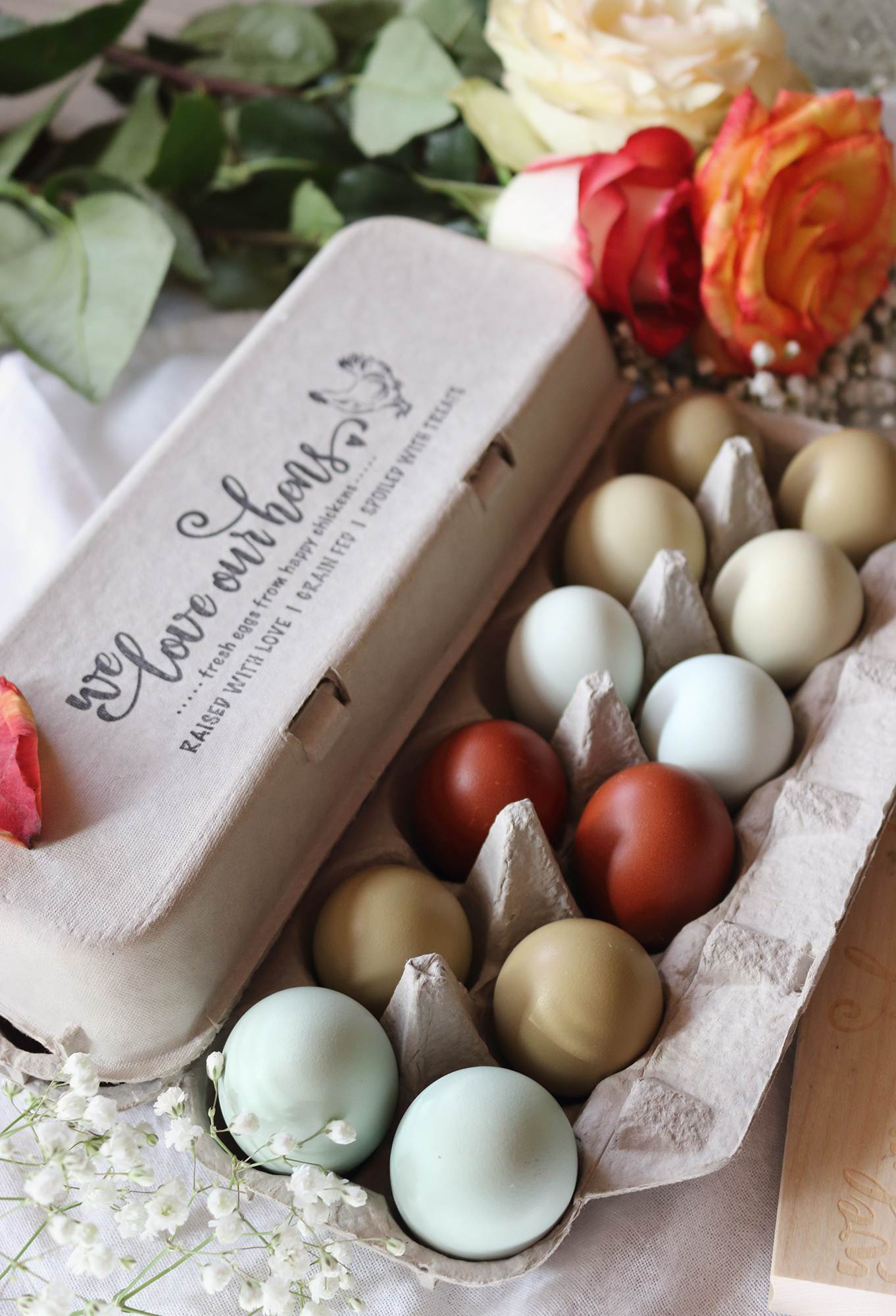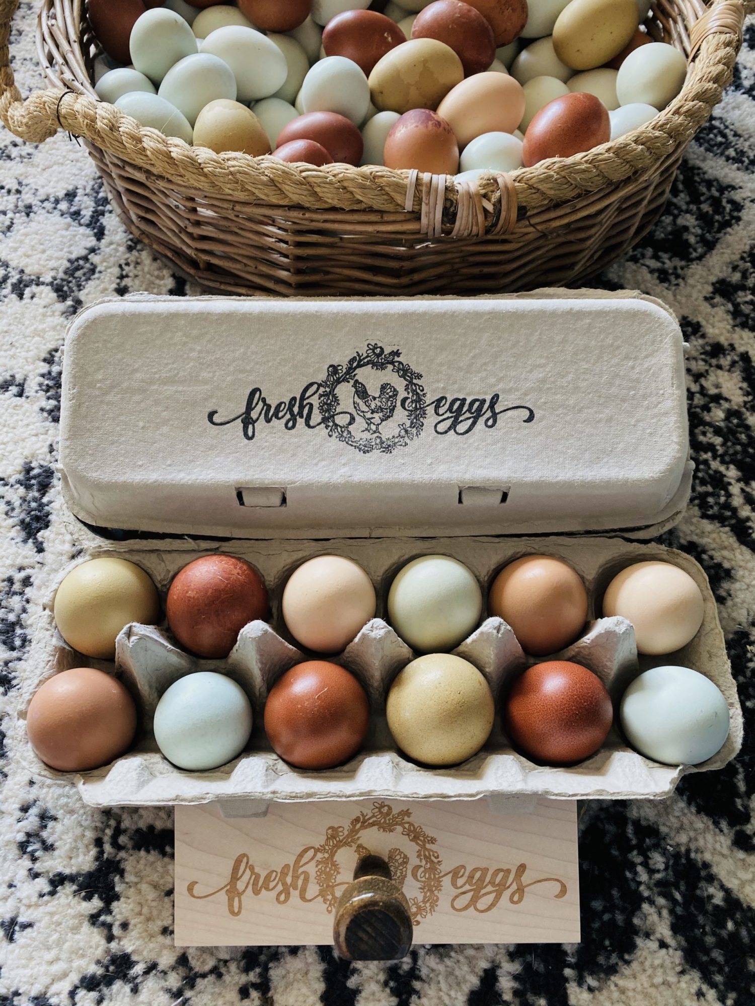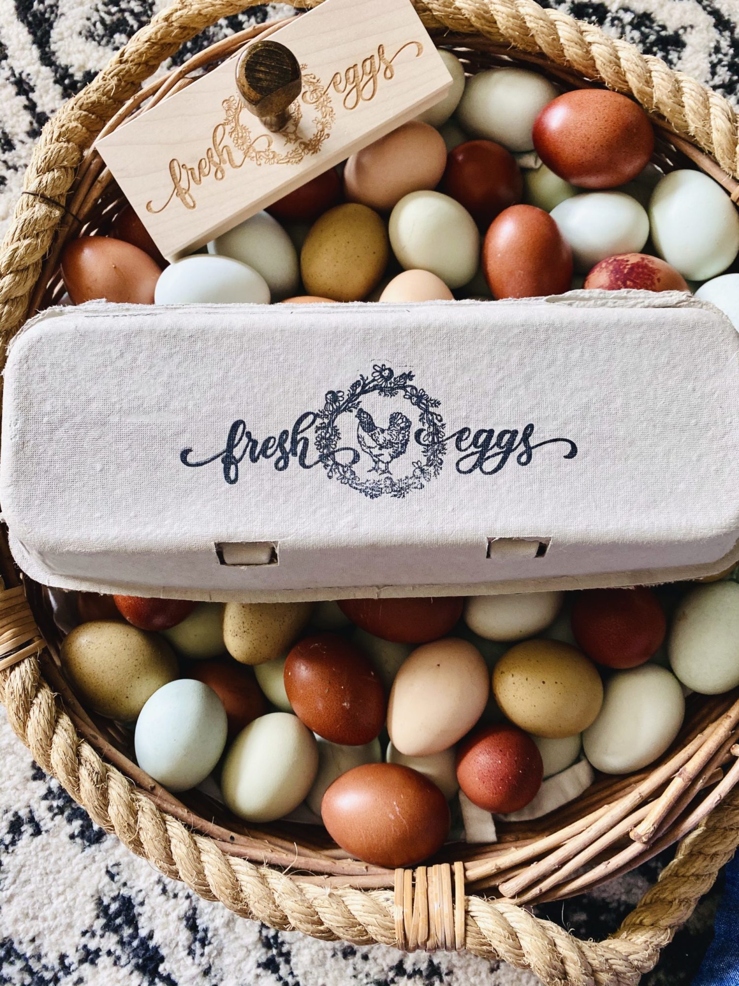 ** For a clear and saturated stamp result on egg carton tops, we recommend opening the egg carton and lying it out flat then using a hard surface underneath the carton top (such as our stamping blocks) in order to fully press the design on to the carton. **